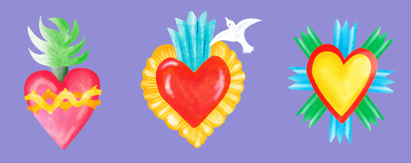 The graphical elements were created in Procreate, combined together with photographies. The style of the illustrations and calligraphy make a reference to Mexican Folk Art and Embroidery.
