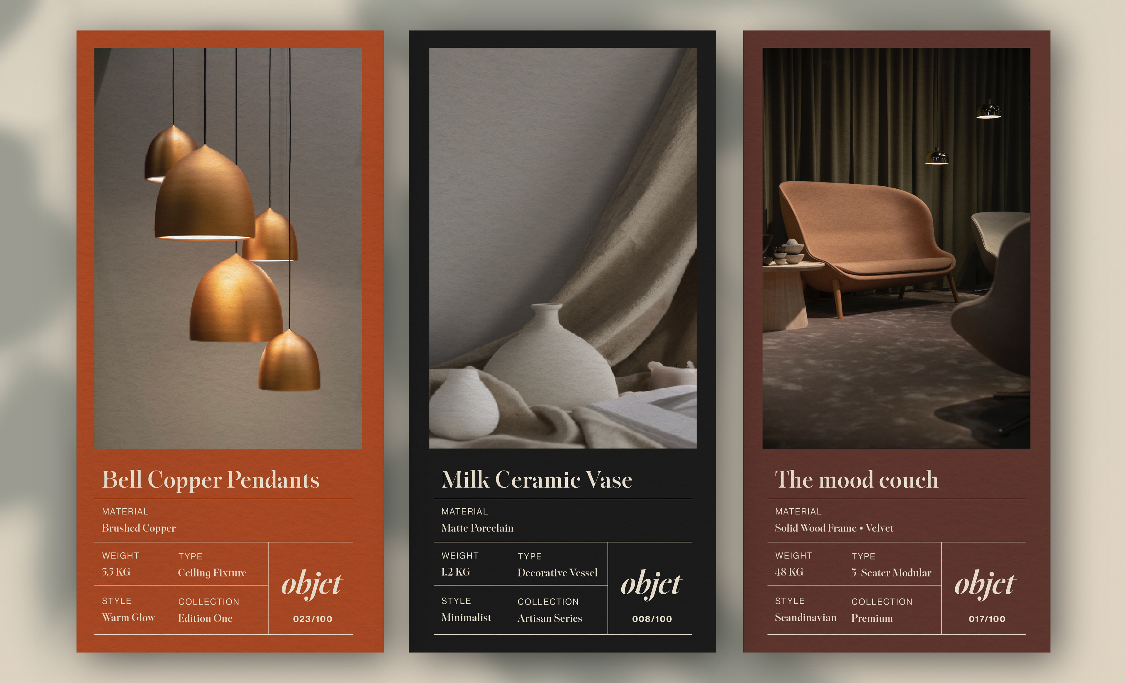 Objet is a conceptual branding project developed in response to a design brief that explored the integration of AI in the creative process. Although not created for a real client, the project served as a practical exercise to explore identity design, packaging, and visual storytelling within a short timeframe.